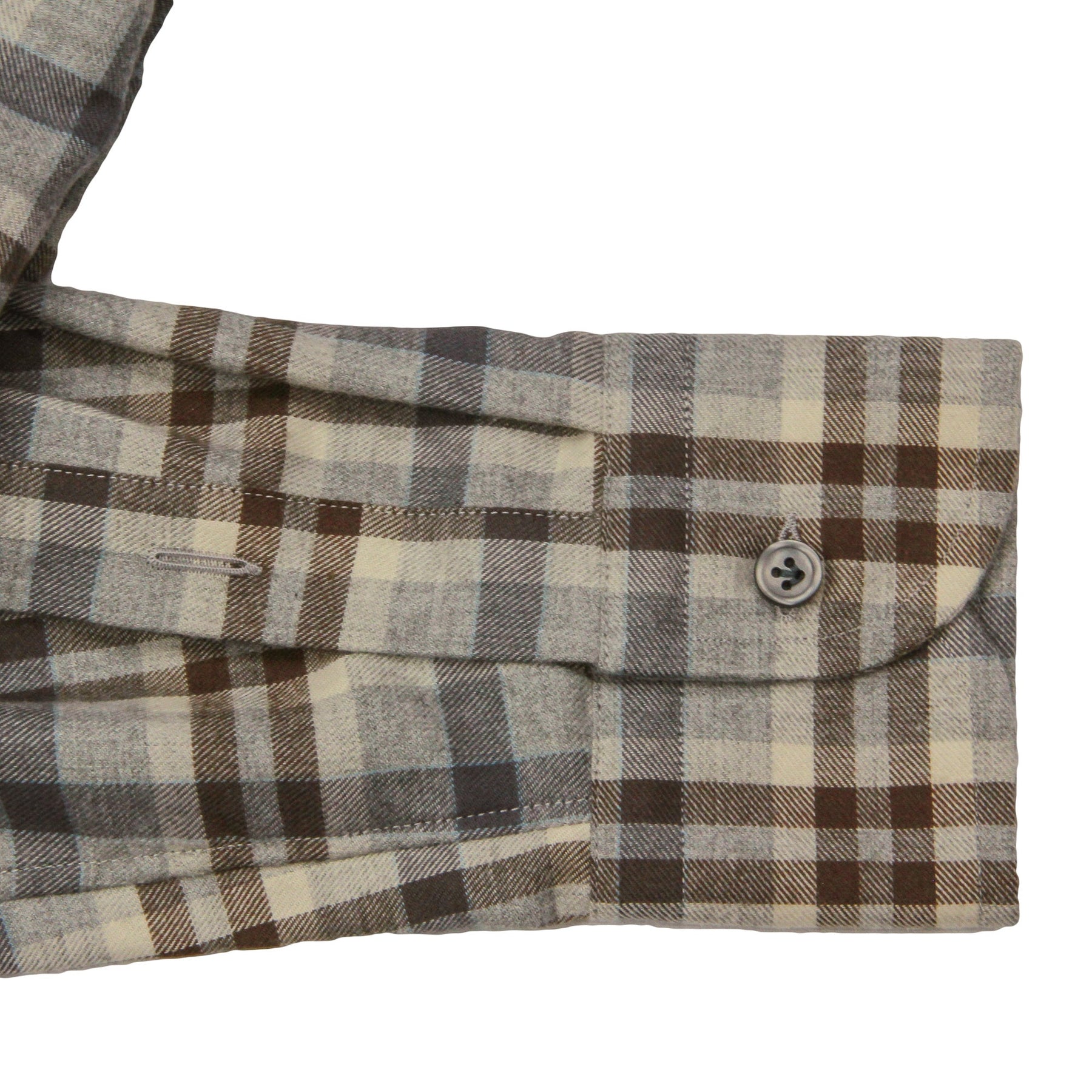 Grey and Brown Check Cotton Wool Flannel Shirt - SONRISA