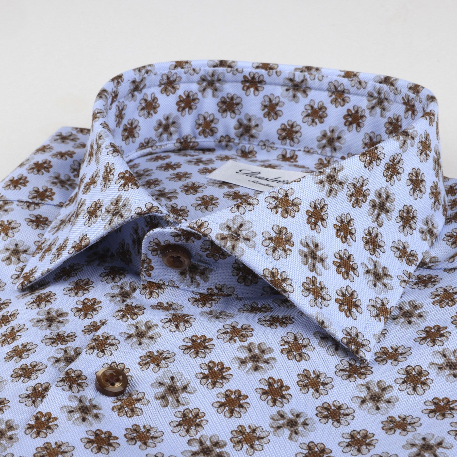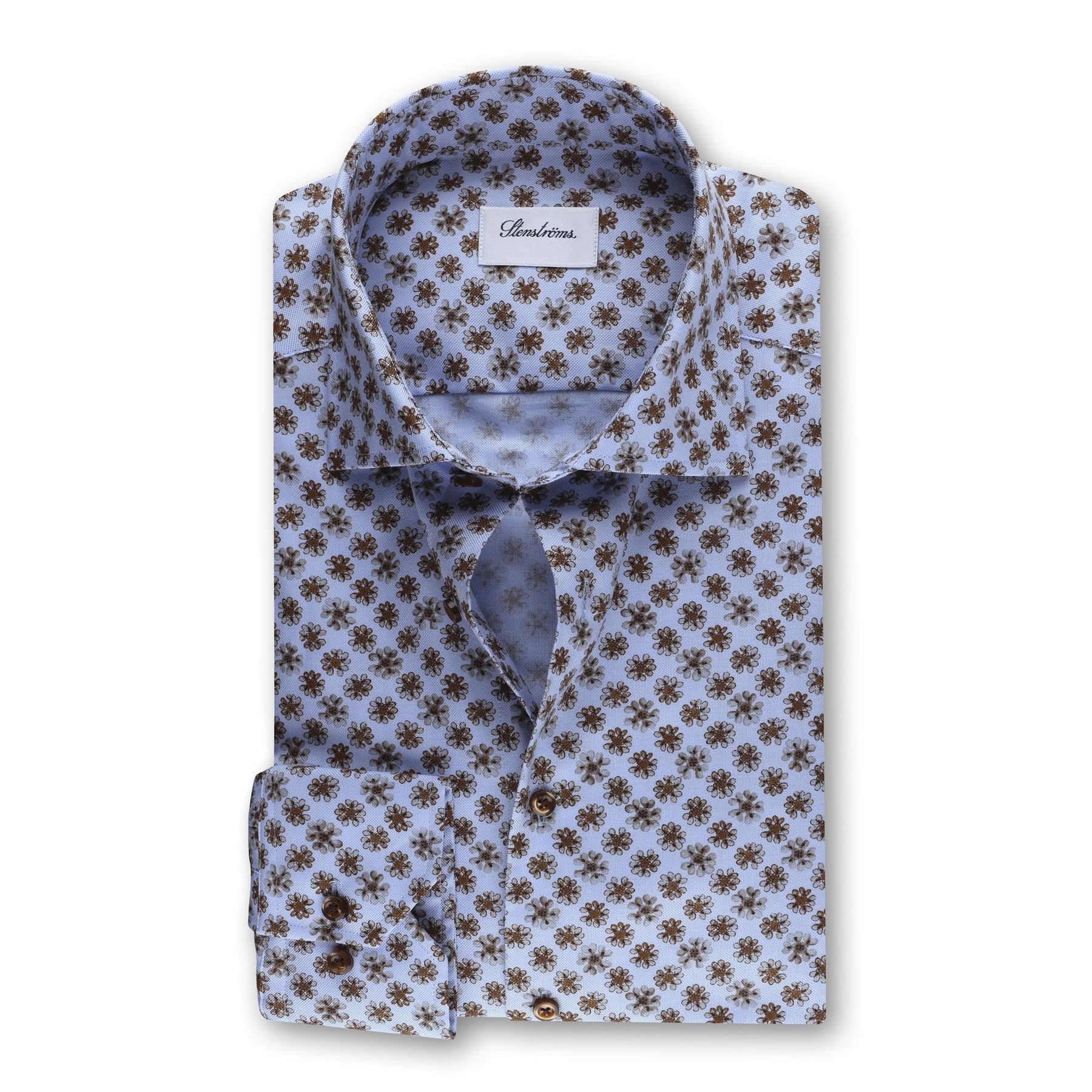 Light Blue Floral Oxford Shirt Fitted Shirt - Stenströms