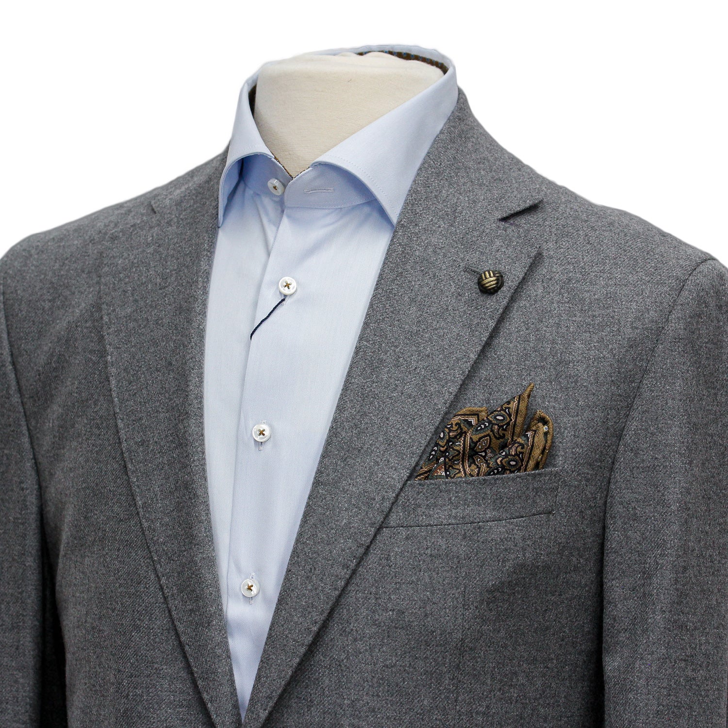 - Two button, notch lapel, side vents, 4 buttons on sleeve