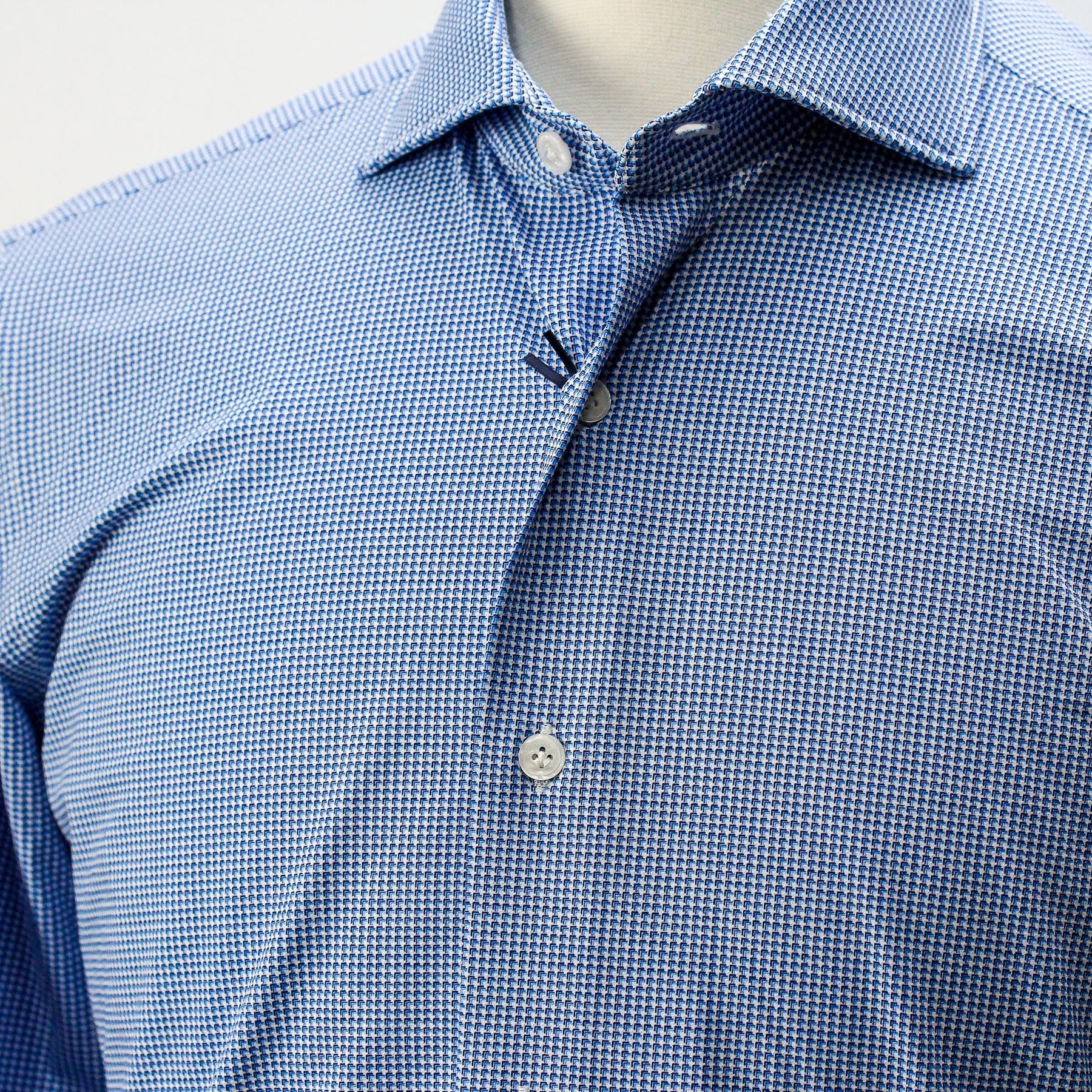 Orian shirt, in antibacterial and anti-crease technical fabric that guarantees excellent breathability, lightness and elasticity, characterized by the Blue Micro Pattern. The techno-fabrics for shirts guarantee extremely fast drying times for the garments and allow them to be washed both by hand and in the washing machine without special precautions