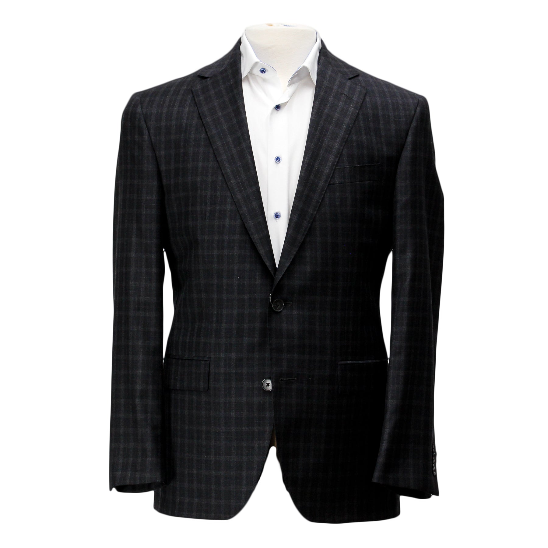 - Two button, notch lapel, side vents, 4 buttons on sleeves