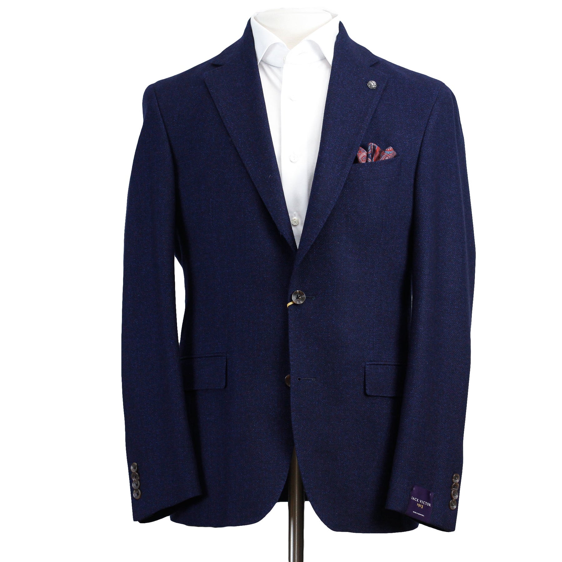 Introducing the Blue Wool Mcallen Contemporary Fit Sport Coat by Jack Victor, a testament to refined style and versatility. Handcrafted in Montreal, this contemporary fit jacket features a very soft shoulder construction, offering both comfort and a contemporary silhouette.