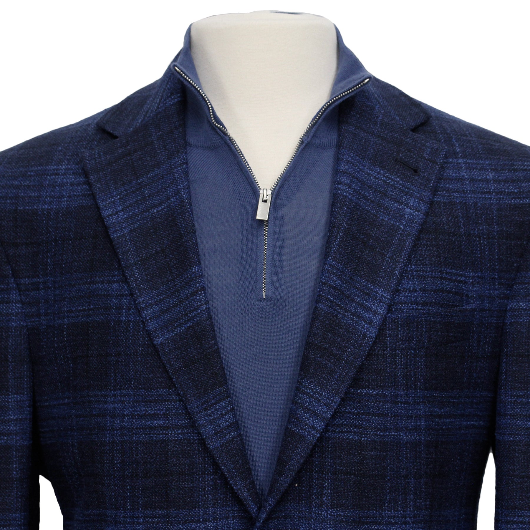 Blue Tonal Plaid Dallas Contemporary Fit Wool-Silk-Cotton Sport Jacket - Jack Victor