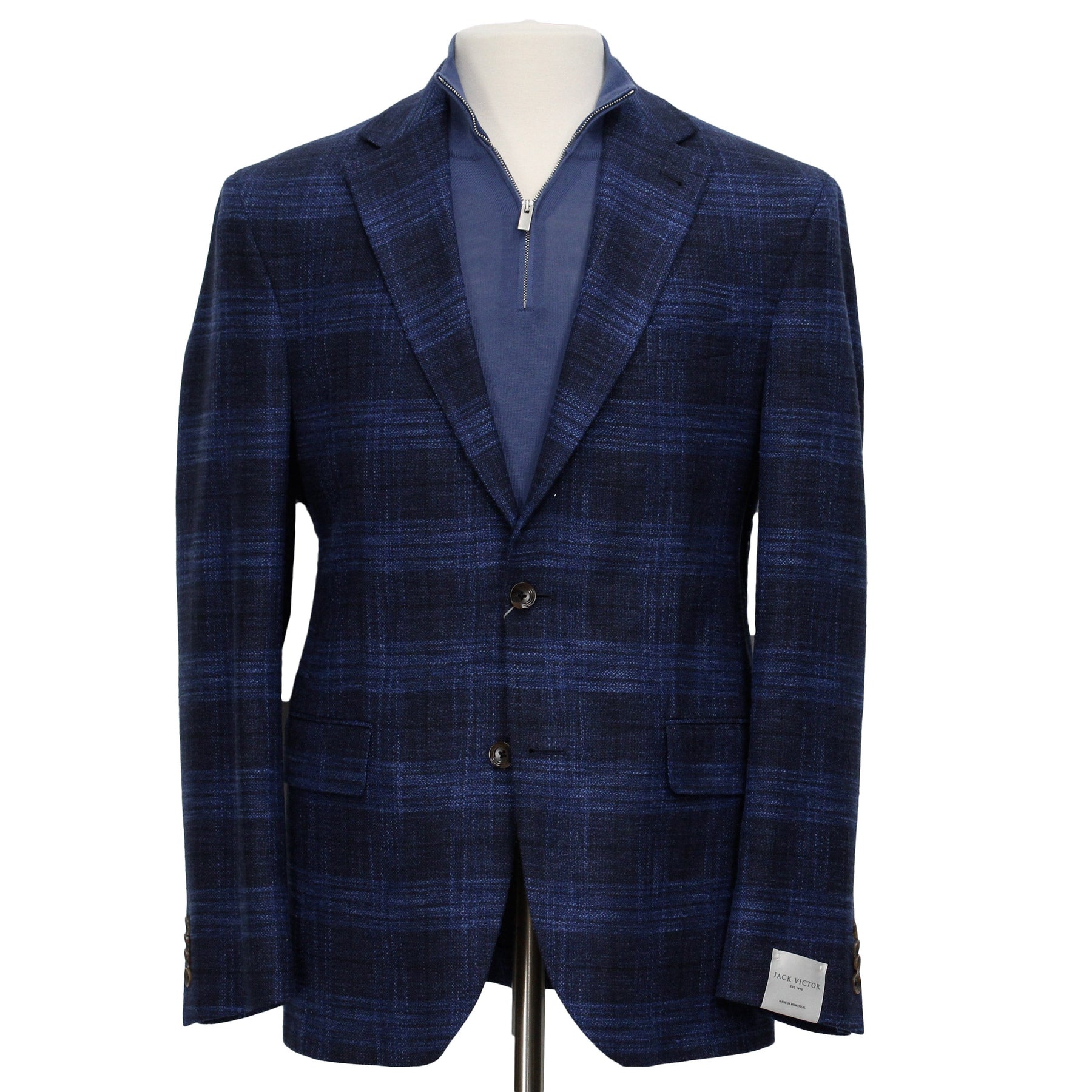 Constructed in their Dallas model, this Jack Victor sport jacket is comfortable in the chest and shoulders with a fitted waistline for a clean look. Featuring a blue plaid pattern with a contemporary fit, the jacket can be dressed up for formal events or can be worn casually.